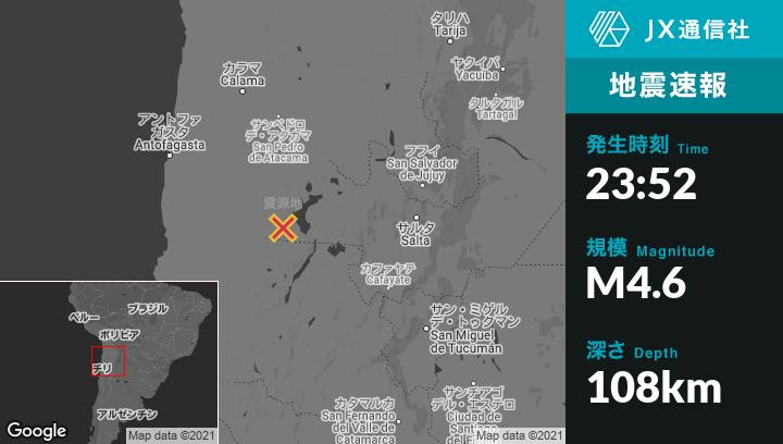 | 震源地 | アルゼンチンのAntofagasta de la Sierraから北北西150kmの地点 |