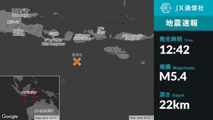 | 震源地 | インドネシアのPrayaから南南東194kmの地点 |