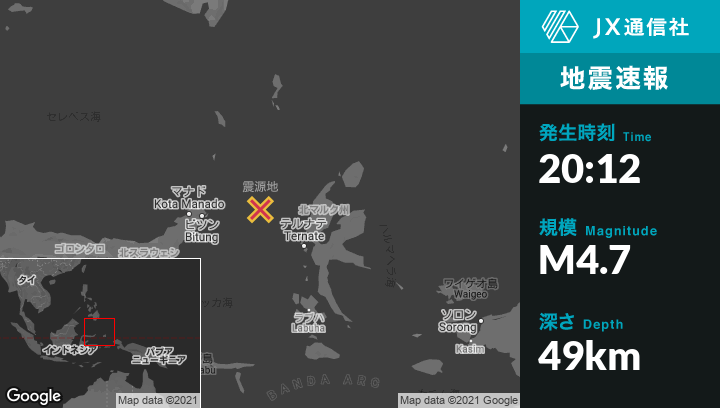 | 震源地 | インドネシアのTernateから北西147kmの地点 |