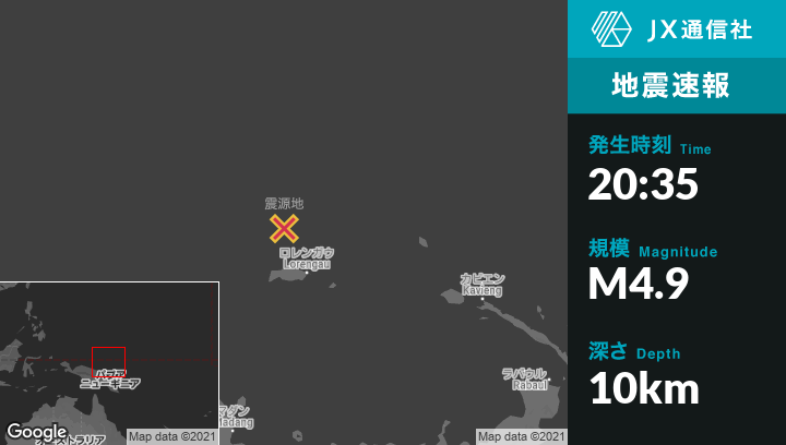| 震源地 | パプアニューギニアのLorengauから北北西120kmの地点 |
