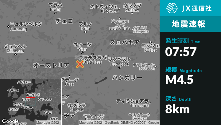 | 震源地 | オーストリアのLanzenkirchenから西北西2kmの地点 |