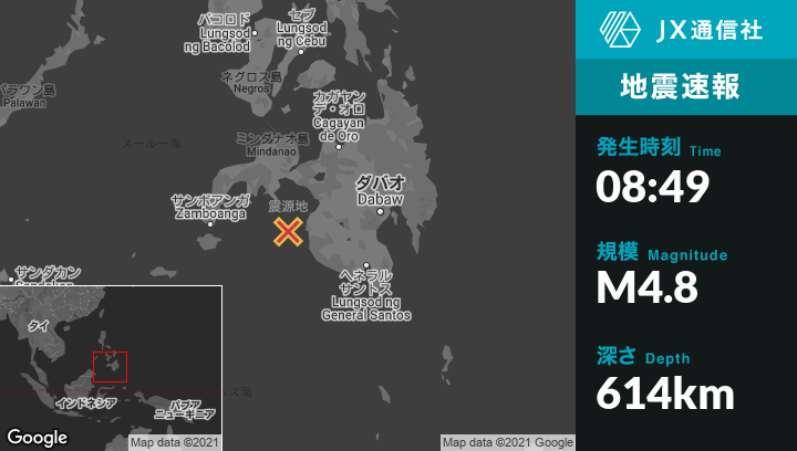 | 震源地 | フィリピンのGadungから西北西45kmの地点 |