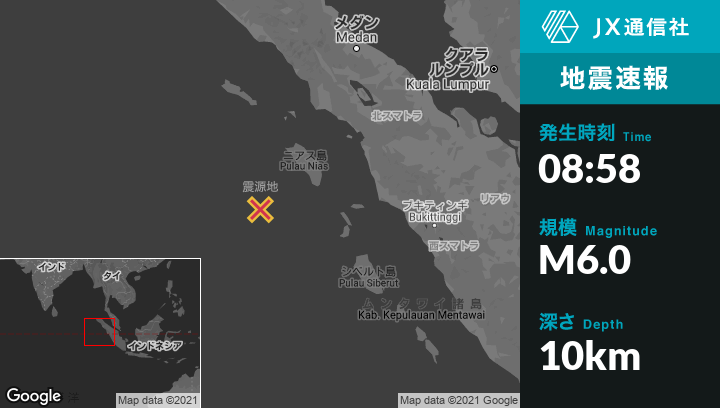 | 震源地 | インドネシアのSinabangから南255kmの地点 |
