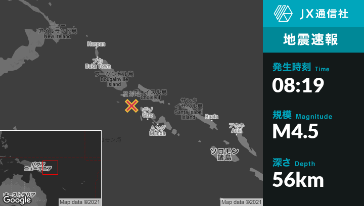 | 震源地 | ソロモン諸島のGizoから北西109kmの地点 |