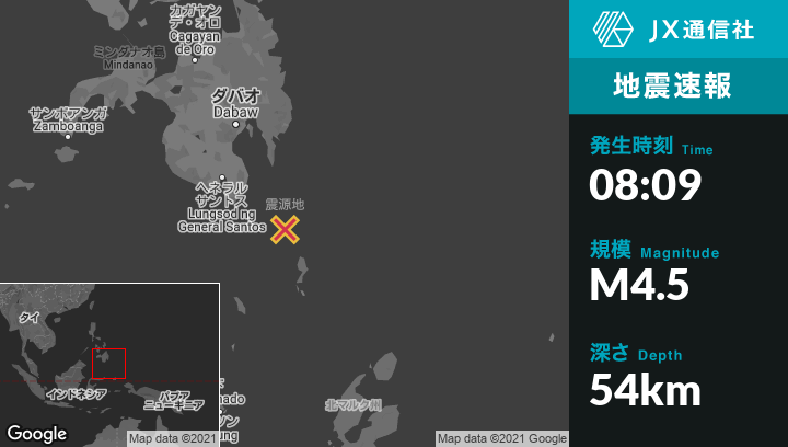 | 震源地 | フィリピンのSaranganiから東南東109kmの地点 |