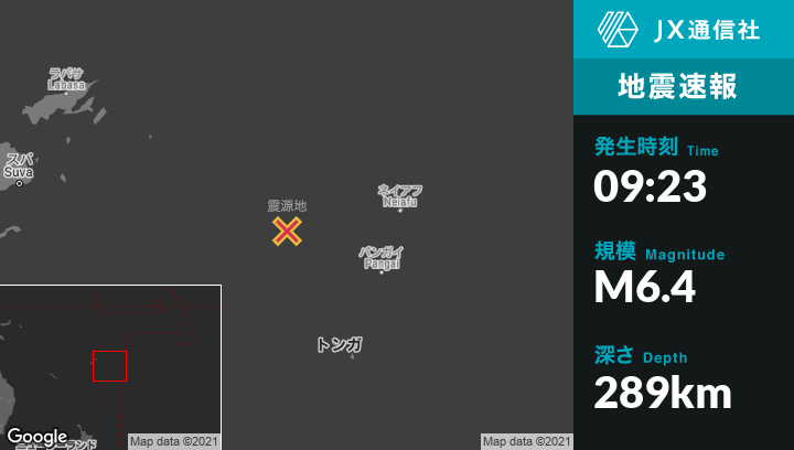 | 震源地 | トンガのPangaiから西北西221kmの地点 |
