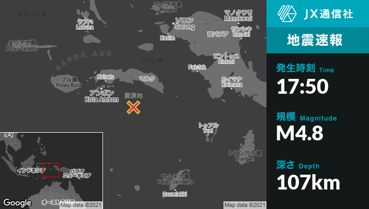 | 震源地 | インドネシアのAmahaiから南南東131kmの地点 |