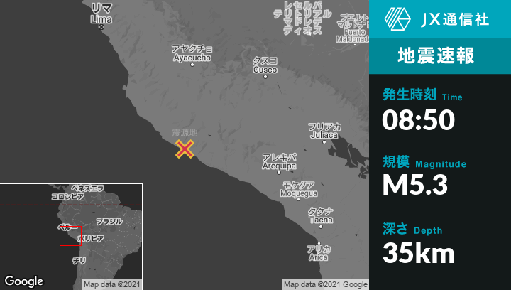 | 震源地 | ペルーのAcaríから南東23kmの地点 |