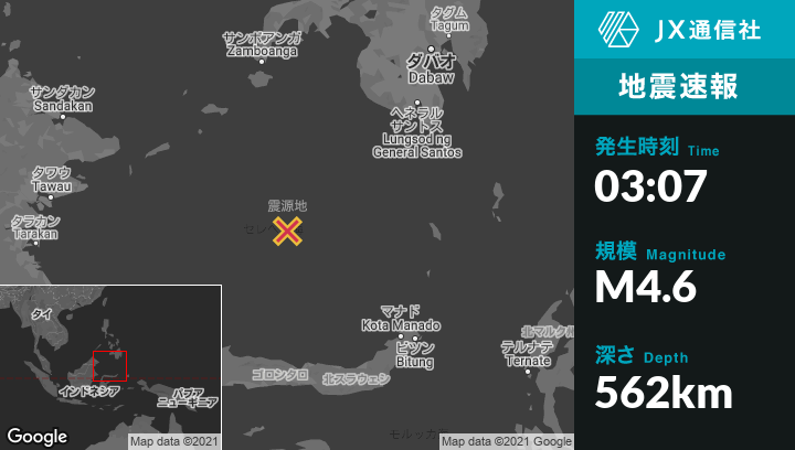 | 震源地 | フィリピンのTabiauanから南南東270kmの地点 |