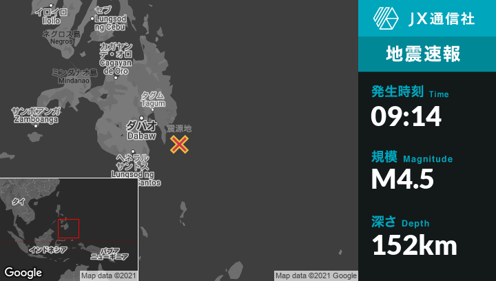 | 震源地 | フィリピンのPondaguitanから東北東52kmの地点 |