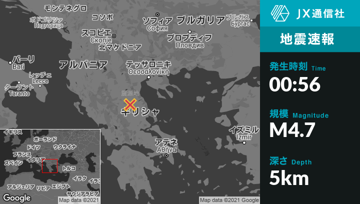 | 震源地 | ギリシャのElassónaから南南西10kmの地点 |