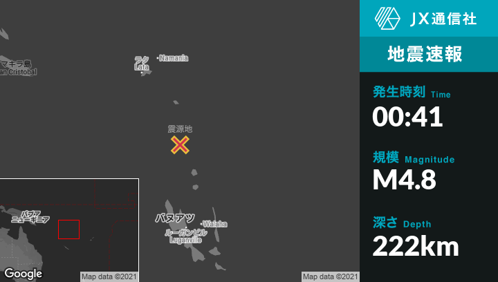 | 震源地 | バヌアツのSolaから北北西127kmの地点 |