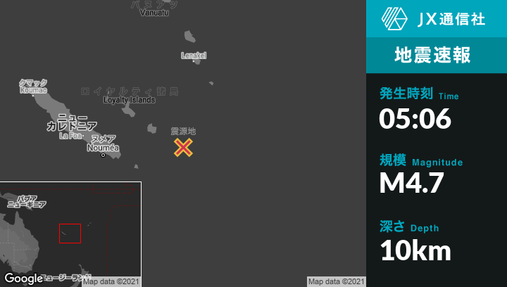 | 震源地 | ニューカレドニアのTadineから東南東119kmの地点 |