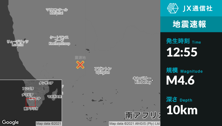 | 震源地 | ナミビアのKarasburgから東北東95kmの地点 |