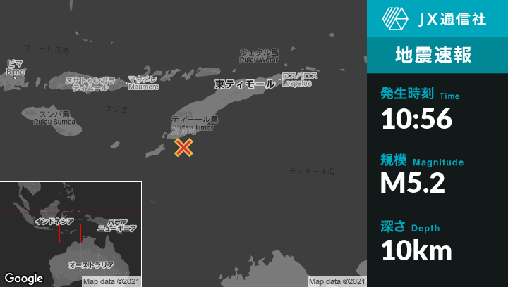 | 震源地 | インドネシアのKupangから南東54kmの地点 |