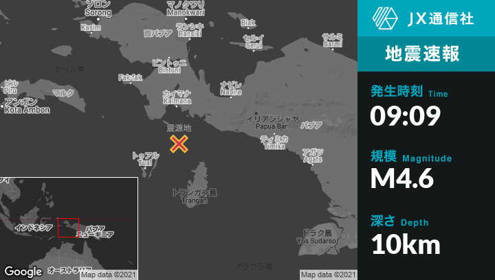 | 震源地 | インドネシアのTualから北東155kmの地点 |