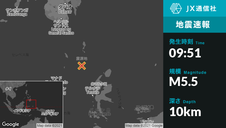 | 震源地 | インドネシアのTobeloから北西207kmの地点 |