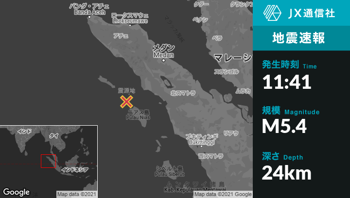 | 震源地 | インドネシアのSinabangから南東97kmの地点 |