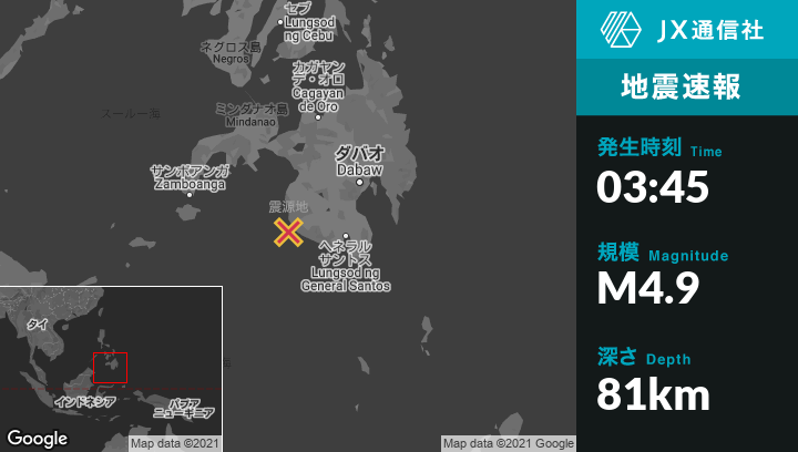 | 震源地 | フィリピンのSangayから南13kmの地点 |