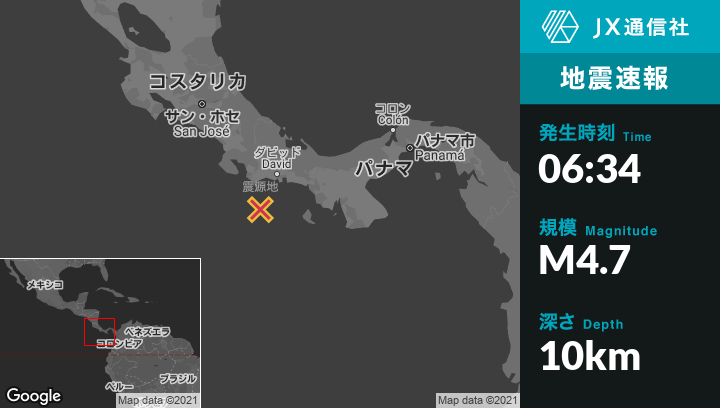 | 震源地 | パナマのPunta de Buricaから南31kmの地点 |