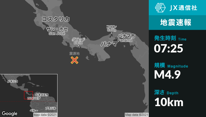 | 震源地 | パナマのPunta de Buricaから南69kmの地点 |
