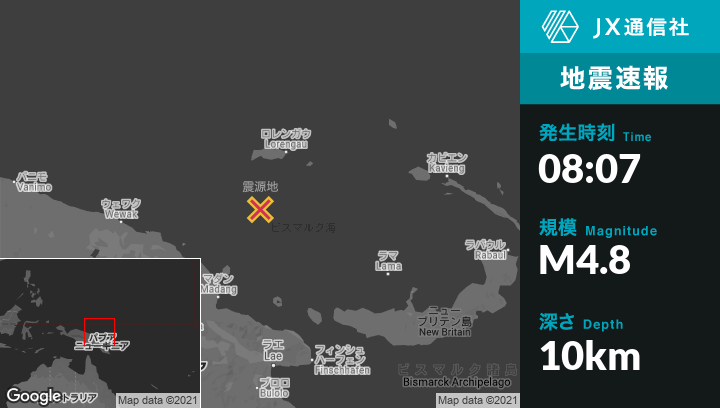 | 震源地 | パプアニューギニアのLorengauから南南西140kmの地点 |