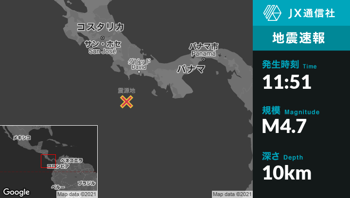 | 震源地 | パナマのPunta de Buricaから南94kmの地点 |
