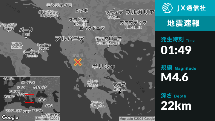 | 震源地 | ギリシャのAsprángeloiから西6kmの地点 |