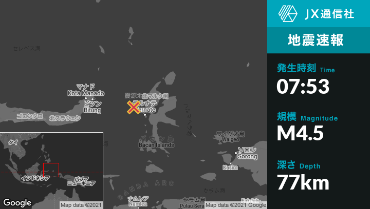 | 震源地 | インドネシアのTernateから北西70kmの地点 |