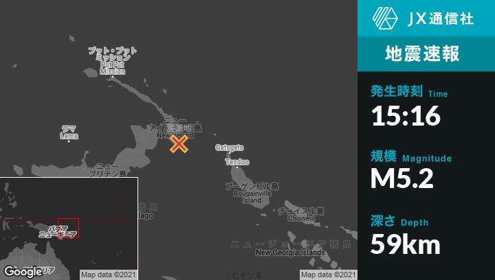 | 震源地 | パプアニューギニアのKokopoから東南東93kmの地点 |