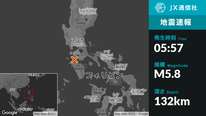 7月24日 05:57頃、フィリピンのHukayから南南東3kmの地点でM5.8の地震がありました。