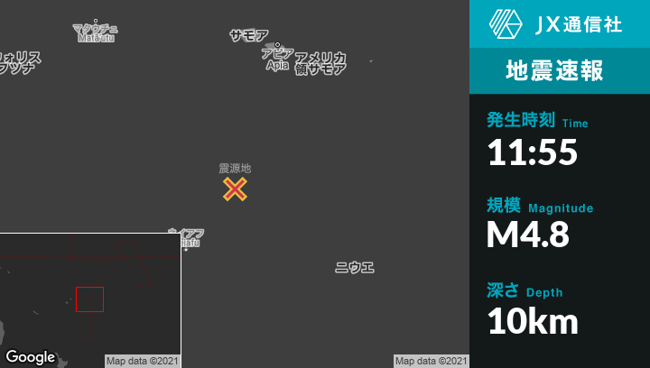 | 震源地 | トンガのHihifoから南東166kmの地点 |