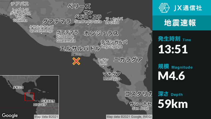 | 震源地 | エルサルバドルのPuerto El Triunfoから南西53kmの地点 |
