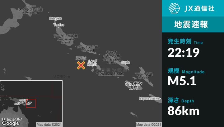 | 震源地 | ソロモン諸島のGizoから西42kmの地点 |