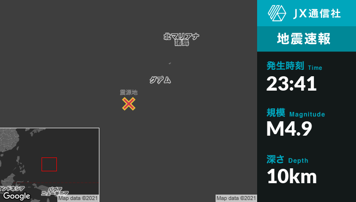 | 震源地 | グアムのMerizo Villageから西南西161kmの地点 |