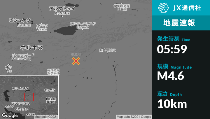 | 震源地 | キルギスタンのKadzhi-Sayから南南東159kmの地点 |