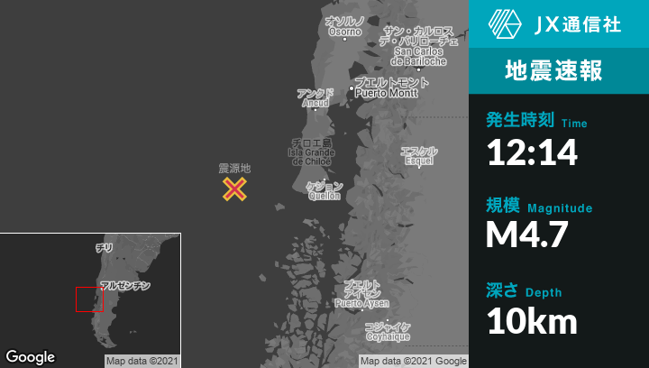 8月01日 12:14頃、チリのChonchiから西南西178kmの地点でM4.7の地震がありました。