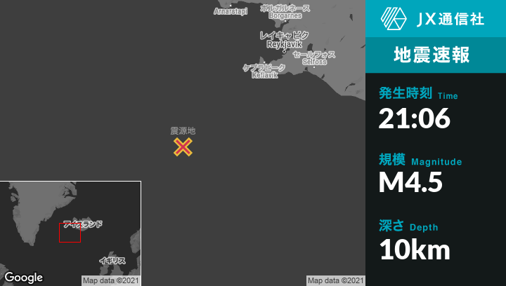 | 震源地 | アイスランドのGrindavíkから南西172kmの地点 |