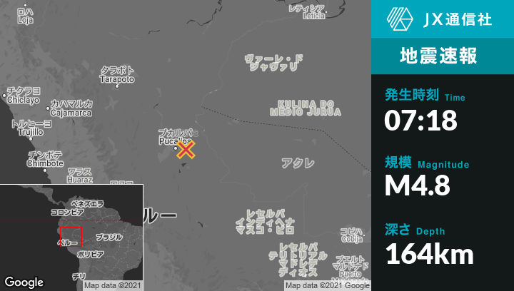 | 震源地 | ペルーのSan Fernandoから東北東30kmの地点 |