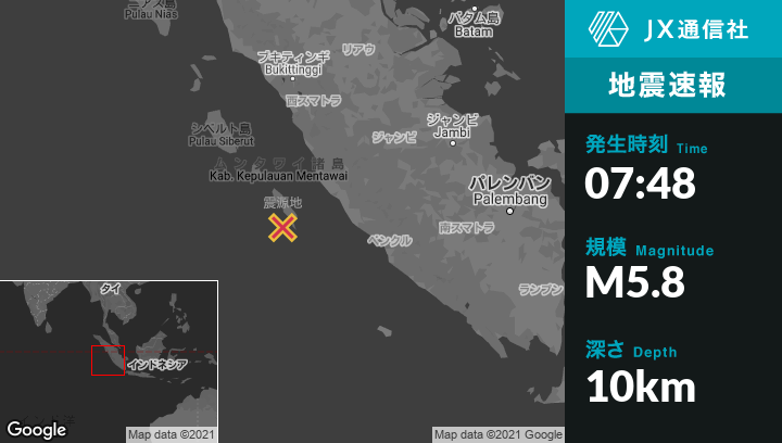 | 震源地 | インドネシアのSungai Penuhから南西184kmの地点 |