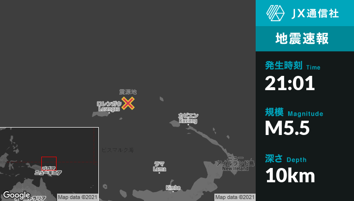 | 震源地 | パプアニューギニアのLorengauから東北東111kmの地点 |