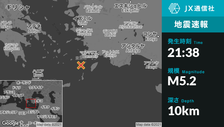 | 震源地 | ギリシャのMandrákiから南南西29kmの地点 |