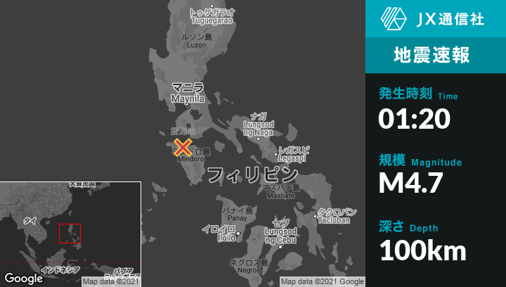 | 震源地 | フィリピンのOdalaから東1kmの地点 |