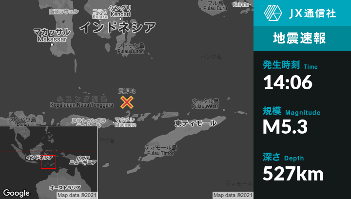 | 震源地 | インドネシアのMaumereから北北東130kmの地点 |