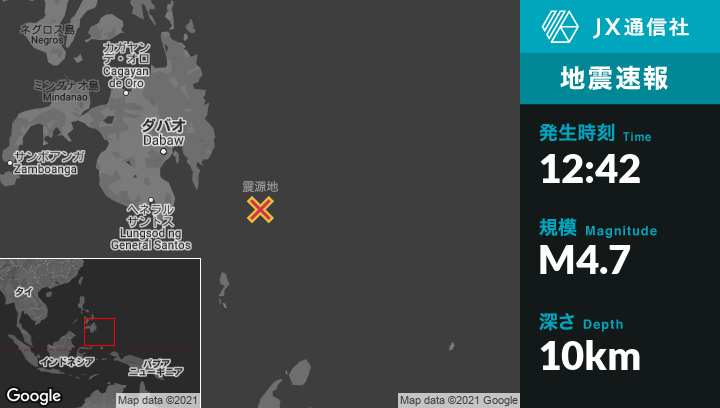 | 震源地 | フィリピンのPondaguitanから東南東158kmの地点 |