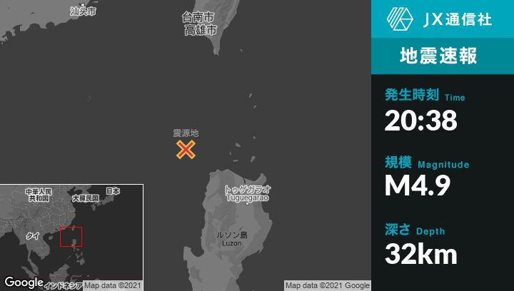 | 震源地 | フィリピンのDavilaから北西121kmの地点 |