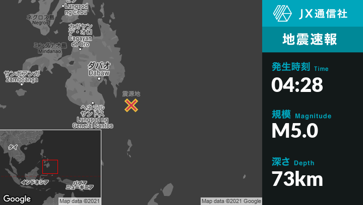 | 震源地 | フィリピンのPondaguitanから東南東78kmの地点 |