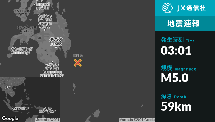 | 震源地 | フィリピンのPondaguitanから東南東98kmの地点 |