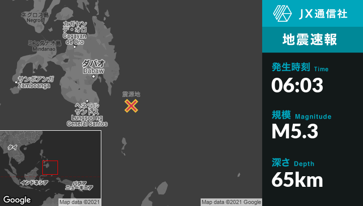 | 震源地 | フィリピンのPondaguitanから東南東108kmの地点 |