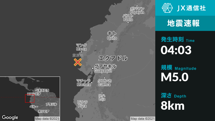| 震源地 | エクアドルのJipijapaから西南西54kmの地点 |